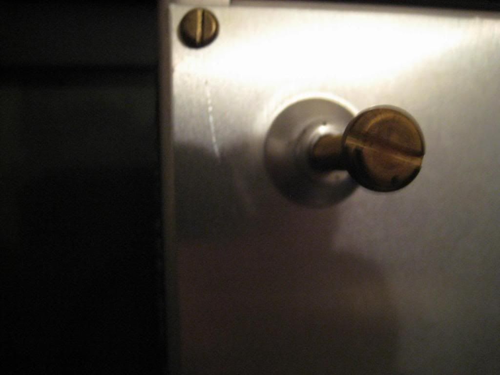 in her Cherry cab. I also did a "fakey" with the thru-bolted "Remove before Servicing" slotted, round head machine screw.