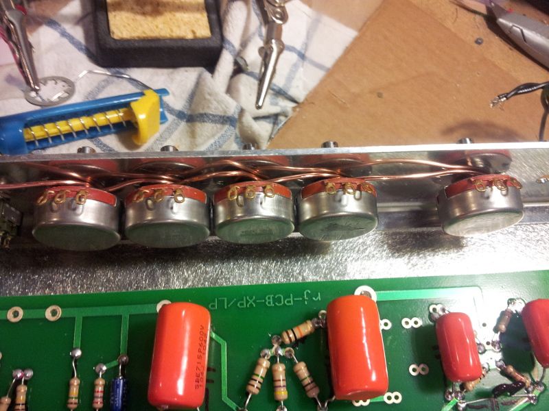 Since I followed the original BOM, I ordered the PEC pots and discovered (d'oh!) I can't solder the ground buss bar to the back of them.
