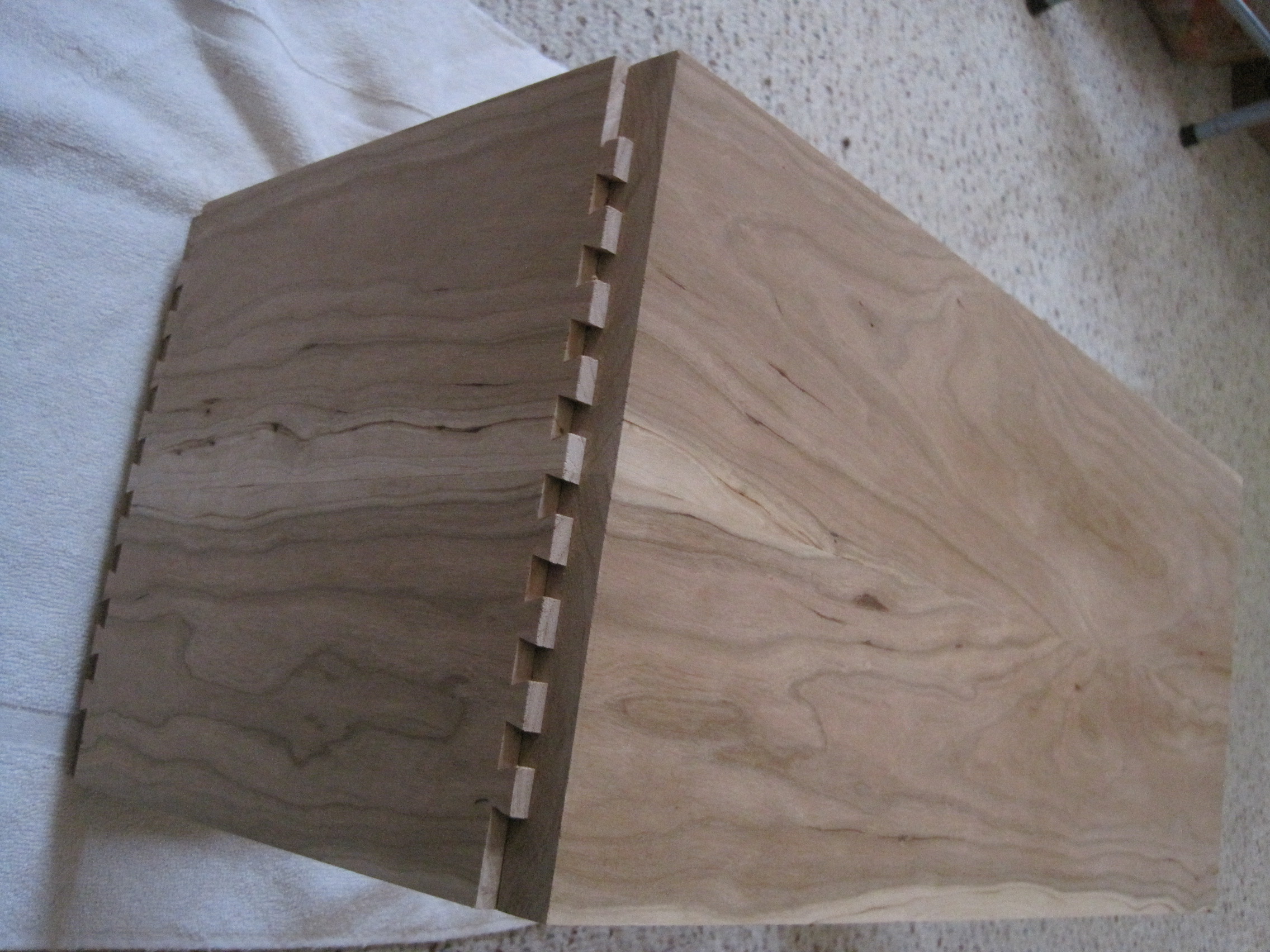 Nice progress, Phil! The dovetails look nice, but I'm afraid I've chickened out on that approach. After seeing William Ng's box joint jig and sled, I'm convinced it will be less frustrating than trying to manage a dovetail jig. Kudos to you for sticking with it, I'm sure it just gets better / easier the more you do it.