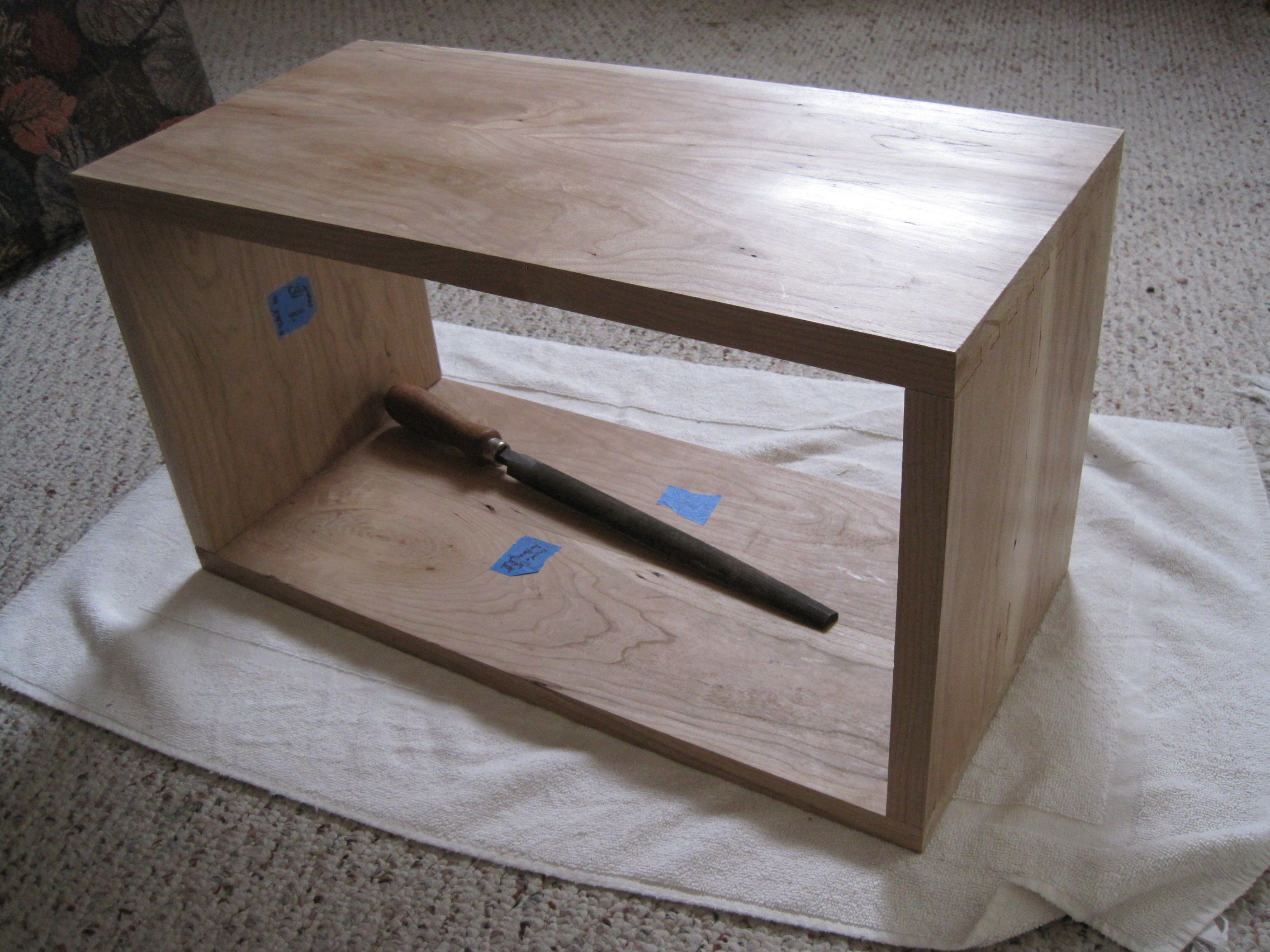 Well, on the PC half blind jig, the directions say, if too tight, the cut is too deep. I figured, it would be so shallow, it would be silly, so I cut them too tight and used the persuader. Also, I did a bad job on the wide shoulder at one corner -- you can see daylight, more than I'd like. Thanks for the kind words. I'm pretty happy with it so far.