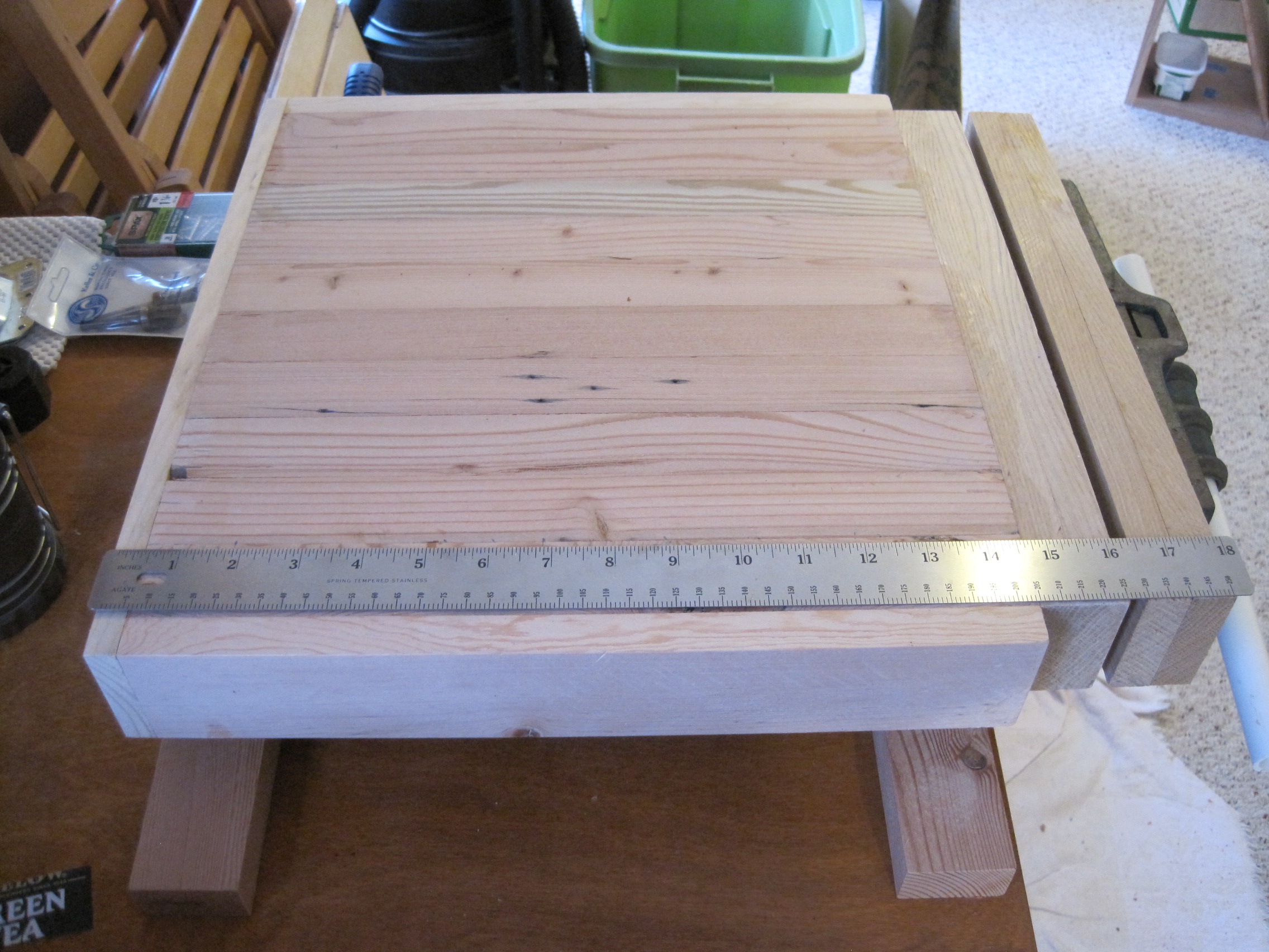 About a month or so ago, I came across the Sjobergs portable workstation. I almost bought it and then I thought, I've got everything I need. This project was built almost entirely of scrap 50+ year old Douglass Fir that came out of my roof in the tree incident a few years ago. The vise was free, removed from my mother-in-law's house when she moved about 18 months ago. The vise jaws are made from an unfinished white oak stair riser, part of the recent purchase from Lumber Liquidators, see my other post on that find.
