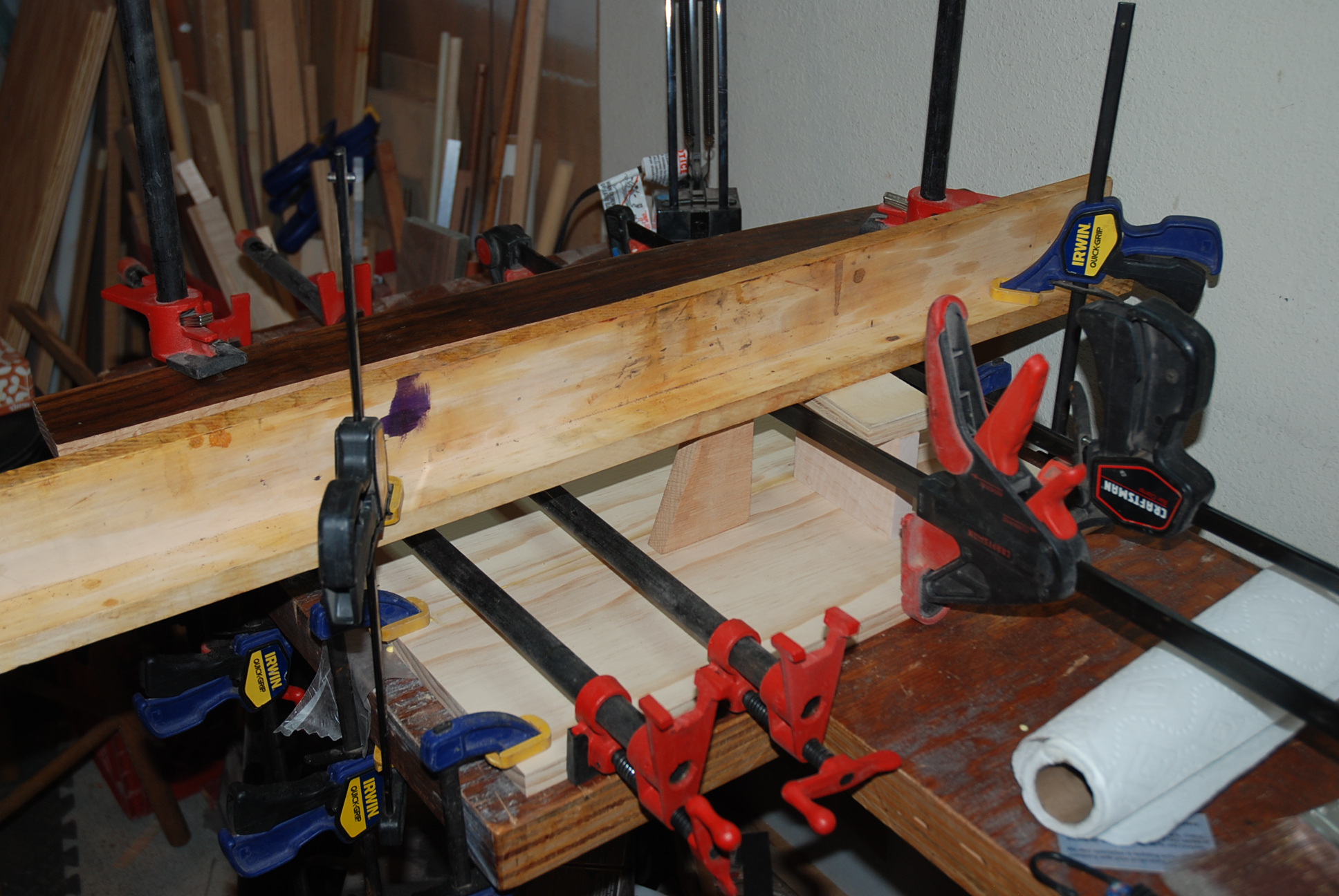 I have two flat work areas - table saw and a portable shooting bench with a 2" marine grade plywood top. This is my do everything surface - glue up, grill cloth stretching station, sanding and oiling station and general catch all crap surface if I'm getting sloppy - which I am most of the time.