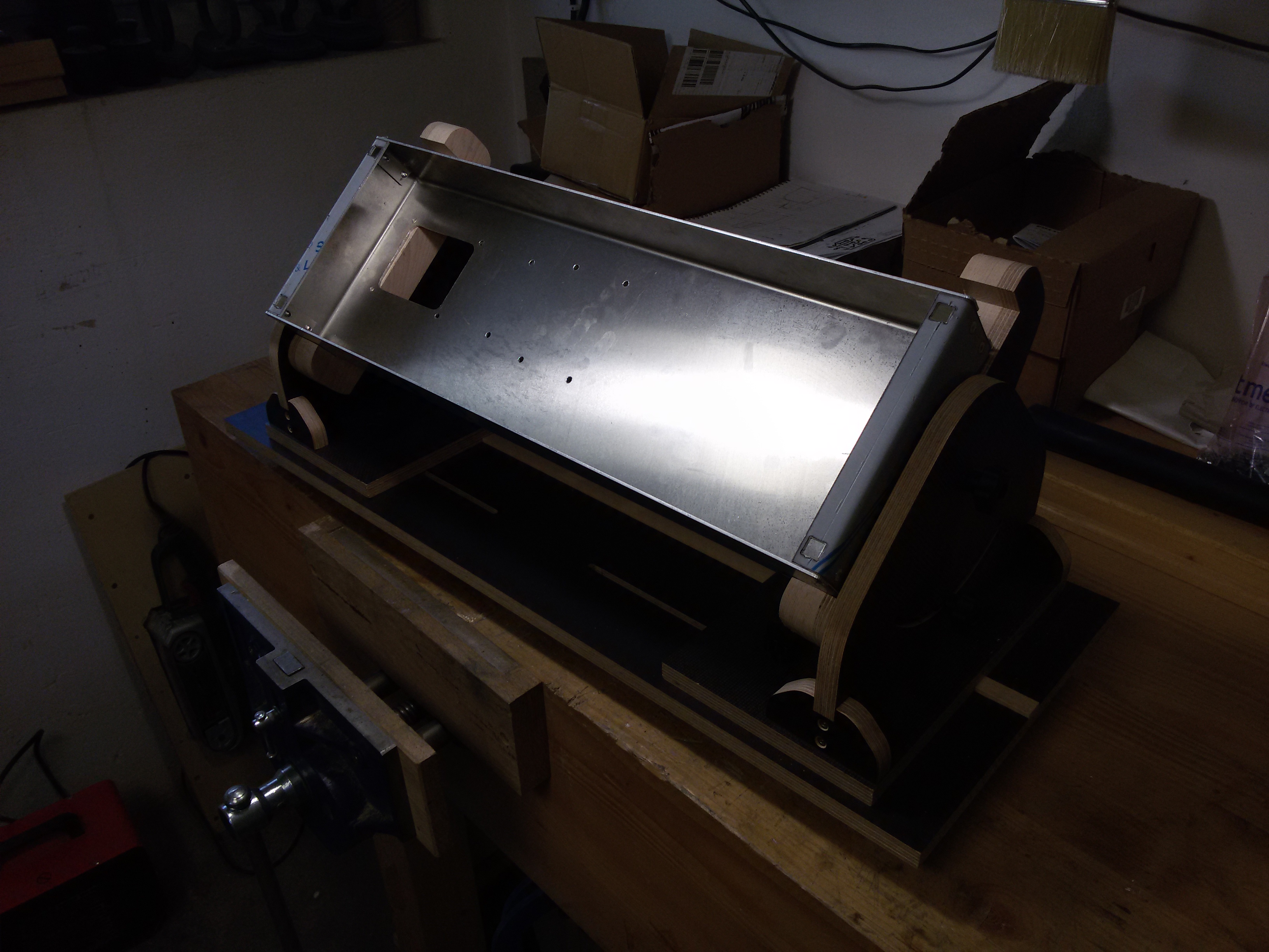 It's a simpler design than some and materials came in at around 30 Euros. Hard to say because I had some scrap pieces and parts lying around. I was lucky enough to find some nice hardwood, (plastic?) coated plywood (the kind used for table tops and trolleys) but it could be made out of 18mm (3/4") ply altering some of the dimensions slightly.