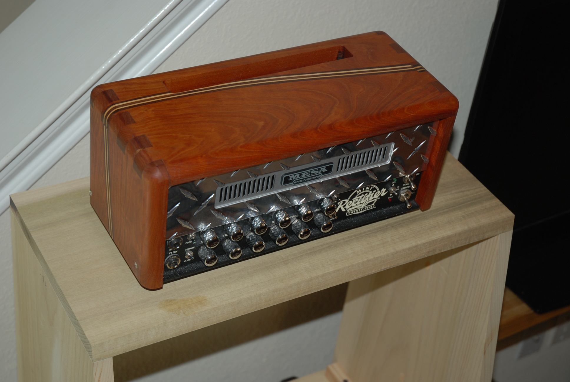 I cut handle slots with a box inside on a 2x12 slant cab and while they work fine they look so so. I thought for a next build I would rim them with the contrasting wood. Then the 'mini' bug bit.