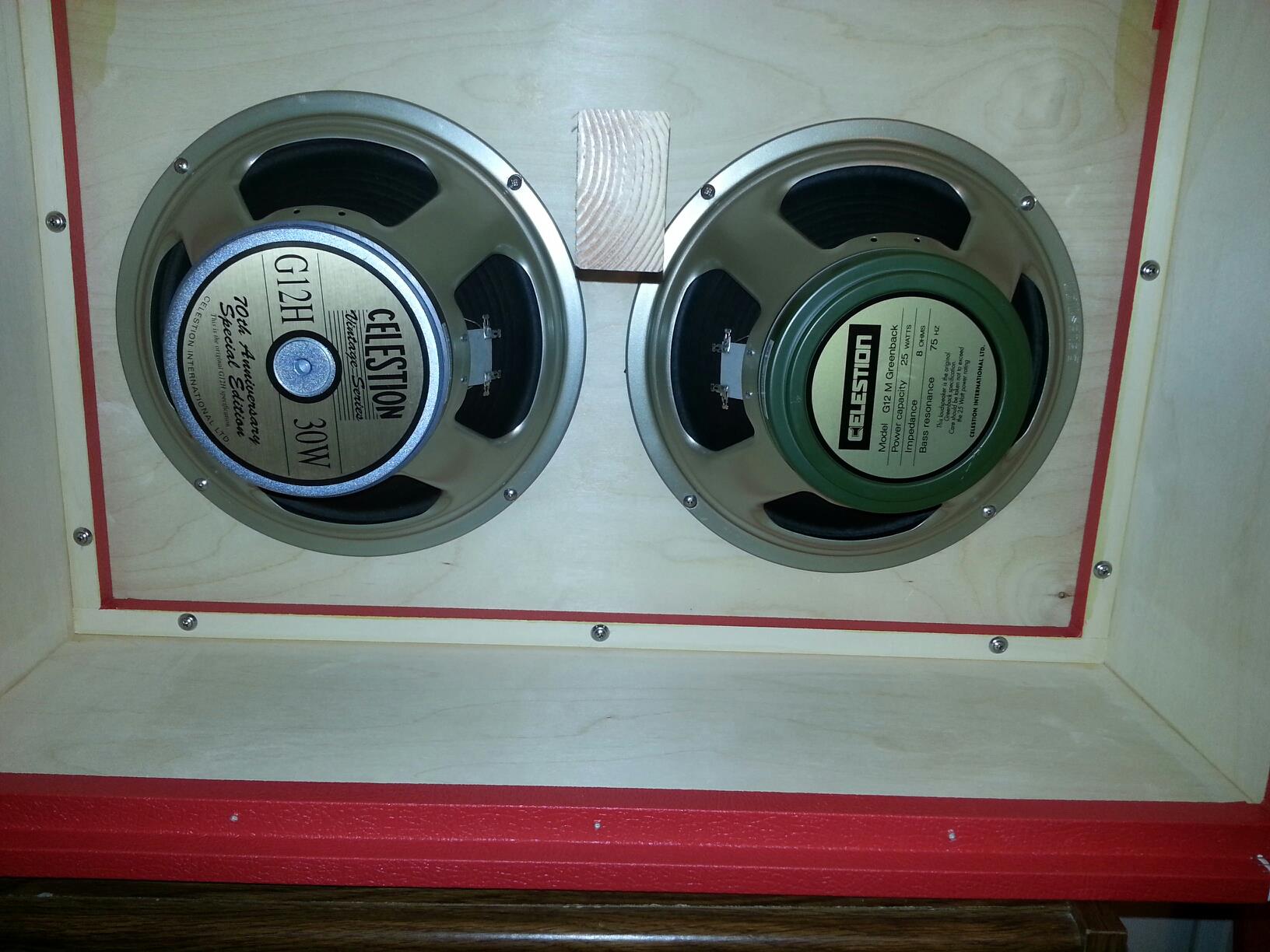 Mikey I mixed up the same pair, Celestion Alnico blue with Celestion 25w green back. But then I got a Gold and paired that with the blue. The other blue is paired with Celestion 12H.
