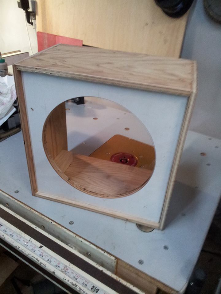 I got bored waiting and stuck screws in it. I also shoved the speaker panel or baffle or whatever in there. I haven't put the 11" hole in it yet. Tomorrow I buy vinyl.