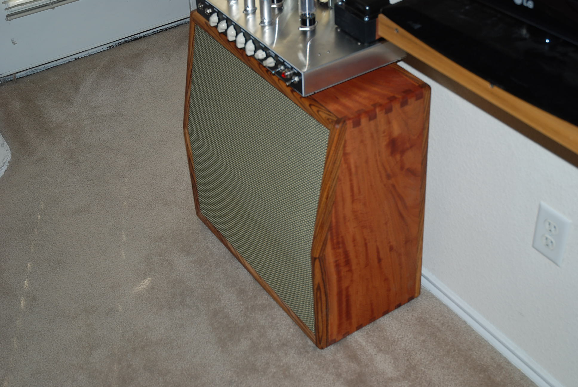 Too much travel and other details - finally put the grill cloth on. Much as I bitch [all in the comfort of my garage] about the jute cloth it sure adds a nice touch to the wood.