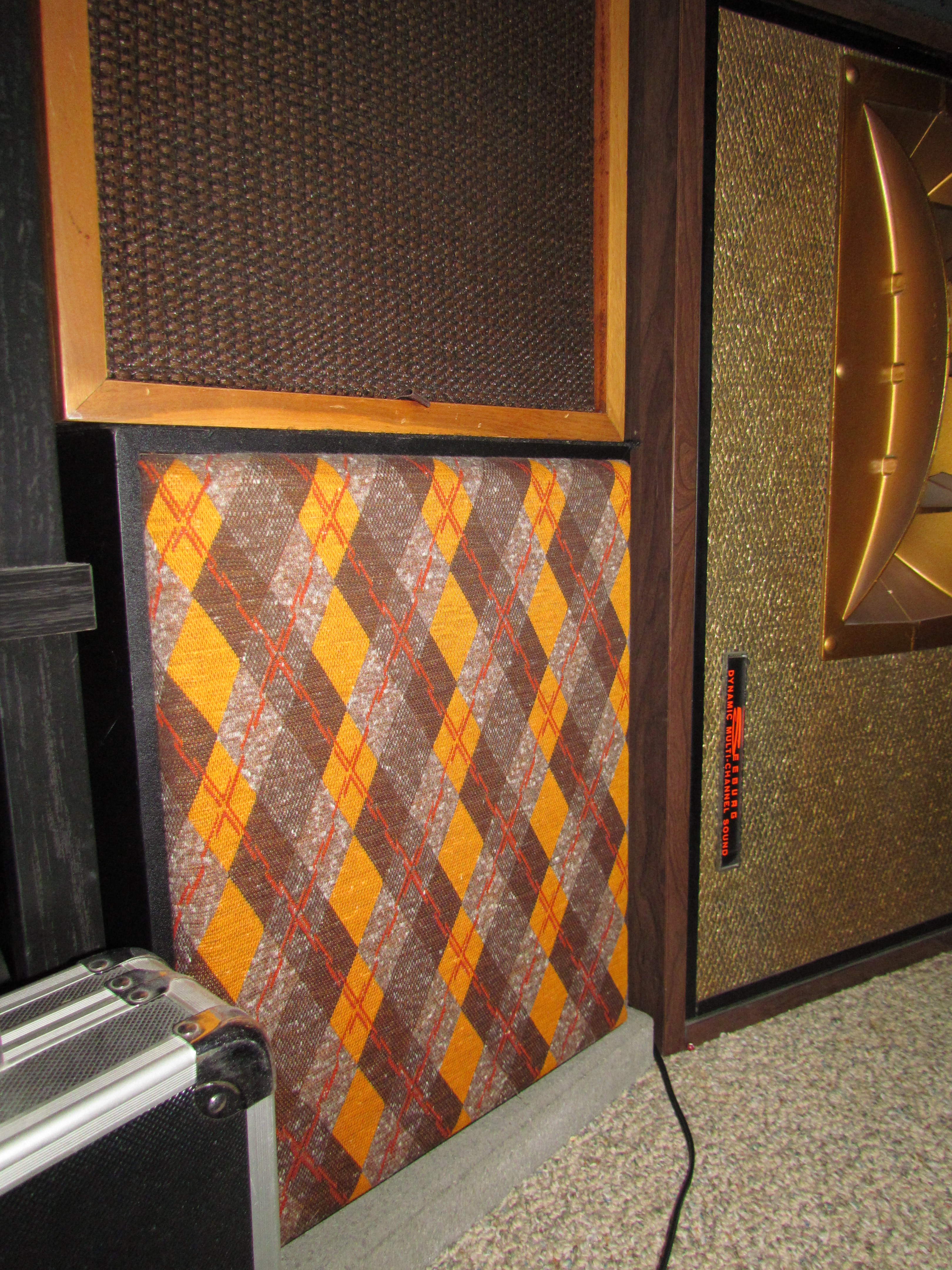 Matt's got a good point that I didn't even think to mention. I covered my subs in brown/orange argyle to match my other speakers! I wouldn't go as far as to to a 412 in most regular cloth, as it'll look kinda funny when your speakers are poofing from behind making it look rather silly when playing.
