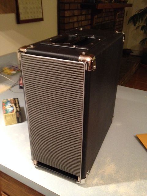 The only things I would change, make the cab just a little wider and taller, maybe 1/2" or 3/4". That way, you can fit a 1/2" post in on either side of the speakers for the grill frame. I had to carve mine out and it made the frame too weak. I also mounted the back on with screws instead of glue. This required 1/2" stock on the inside to screw the back screws in. Really, the hard part was the speaker holes which my buddy did with a router.