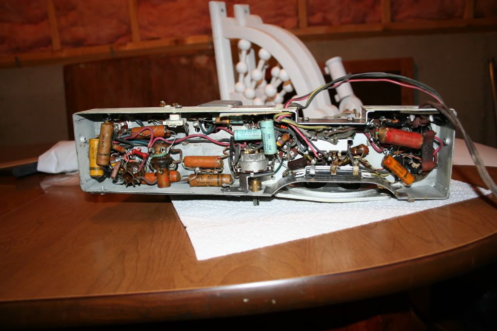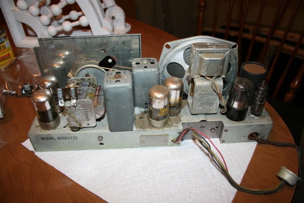 That's the pre and power amp. Now, on to the power supply. The radio I bought had been modified to use a 117Z3 rectifier instead of a 117Z6GT/G. The thing is, a 117Z3 is just a single diode. How you make a power supply using one diode, I don't know. I expect it didn't work. A smaller socket has been put in place for the 117Z3 so somebody went to a lot of effort. Whatever, these tubes are dirt cheap, so I'll order a 117Z6GT/G and a socket for it.