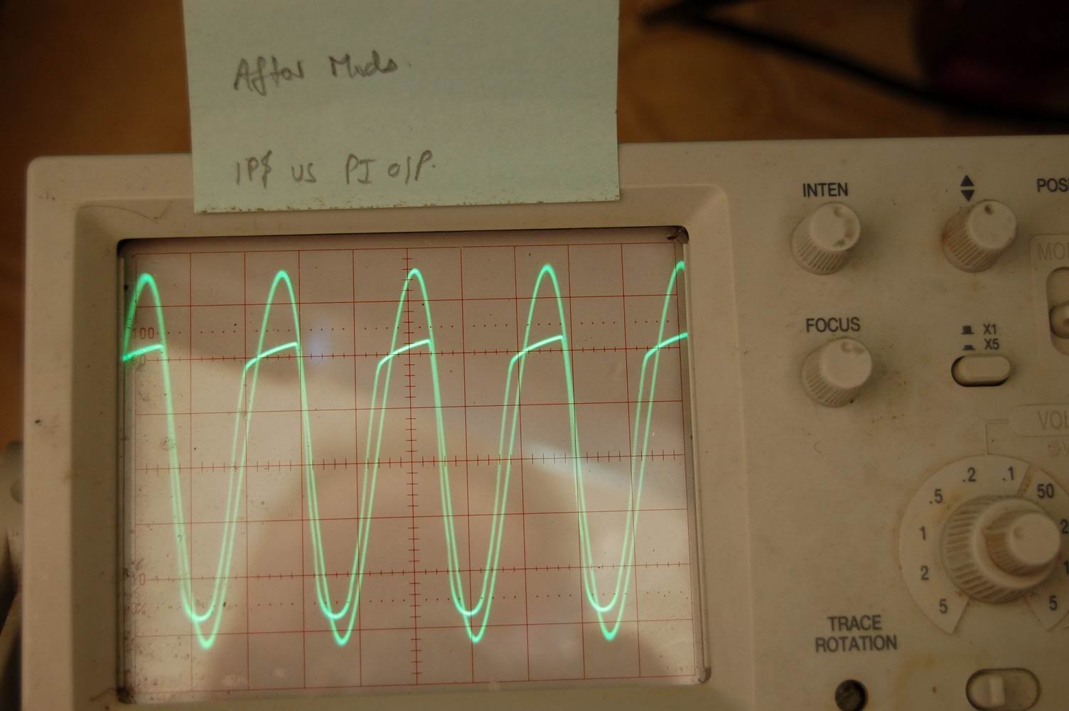 If you're probe is on one of the PI plate resistors, I would expect a trace like this as you increase the volume (here's one I made earlierxtian wrote:Left column: .... As I continue to open the volume pot, PI clip increases, and V2 amplitude drops, and wave becomes flattened.