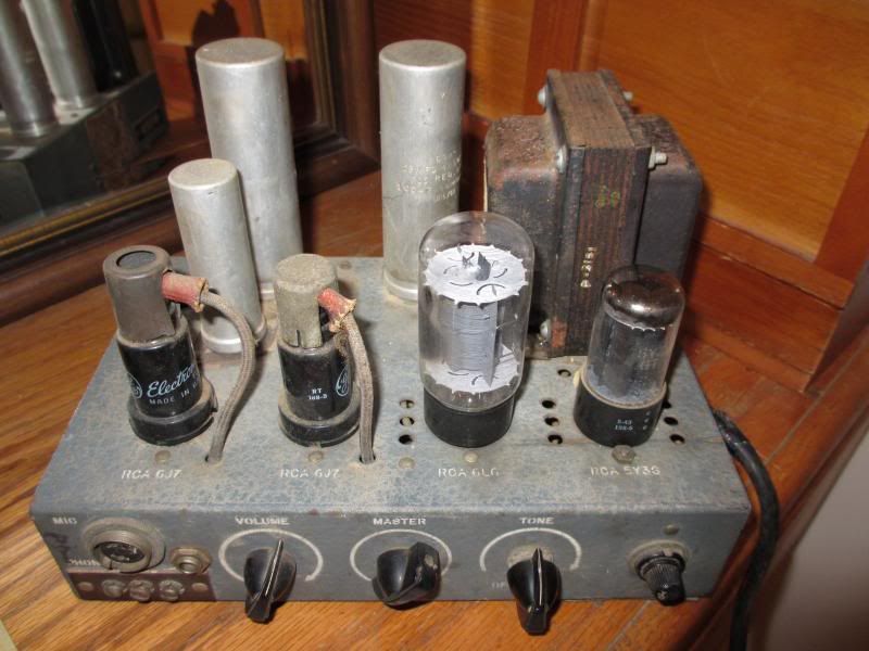 Though mine has clearly been altered with a 1/4th audio input in the front and a much bigger power transformer. The guy I bought it from told me that his father was in a band back in the 50's and 60's, and this was part of his gear. He also showed me an original (and big) silvertone head and amp, and a whole box full of spare tubes (will be buying it all soon). Who knows what else i've not seen.