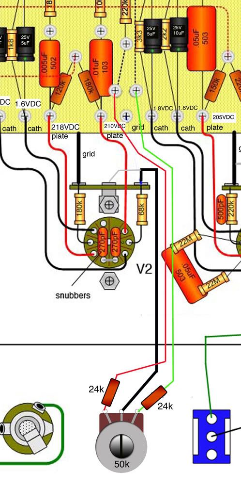 bluesfendermanblues wrote:You might as well ad a treble bleed pot - a 500ka pot with a 1nf cap - I have done this on my OTS 50w, which had to empty holes on the back. One for the OD pot, one for the treble bleed pot paralleled on the OD master pot.
