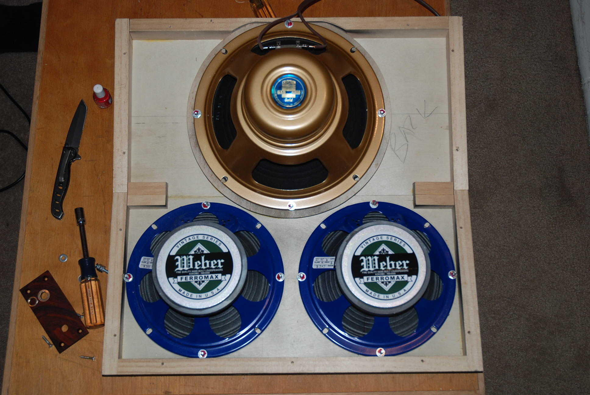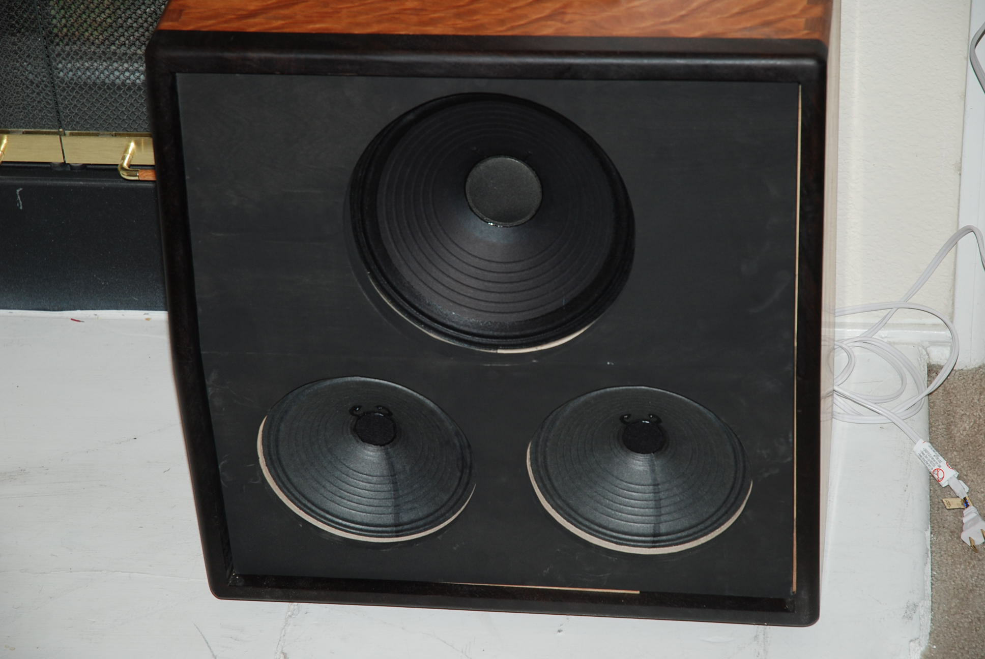 Update on cabinet. Figured out how to mash the 10" in - nothing like changing the design specs midway through the project. Grill cloth is next.