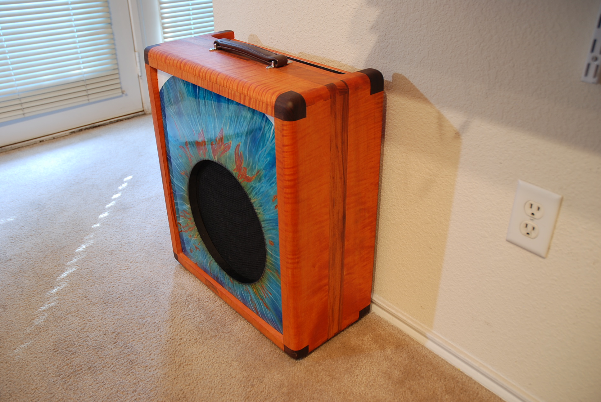 So I built this for the 2017 Dallas Guitar show as a booth amp 5/5-7/17. 1987 in a curly maple, canary and walnut finished with an orange water based stain and linseed oil / mineral spirits.