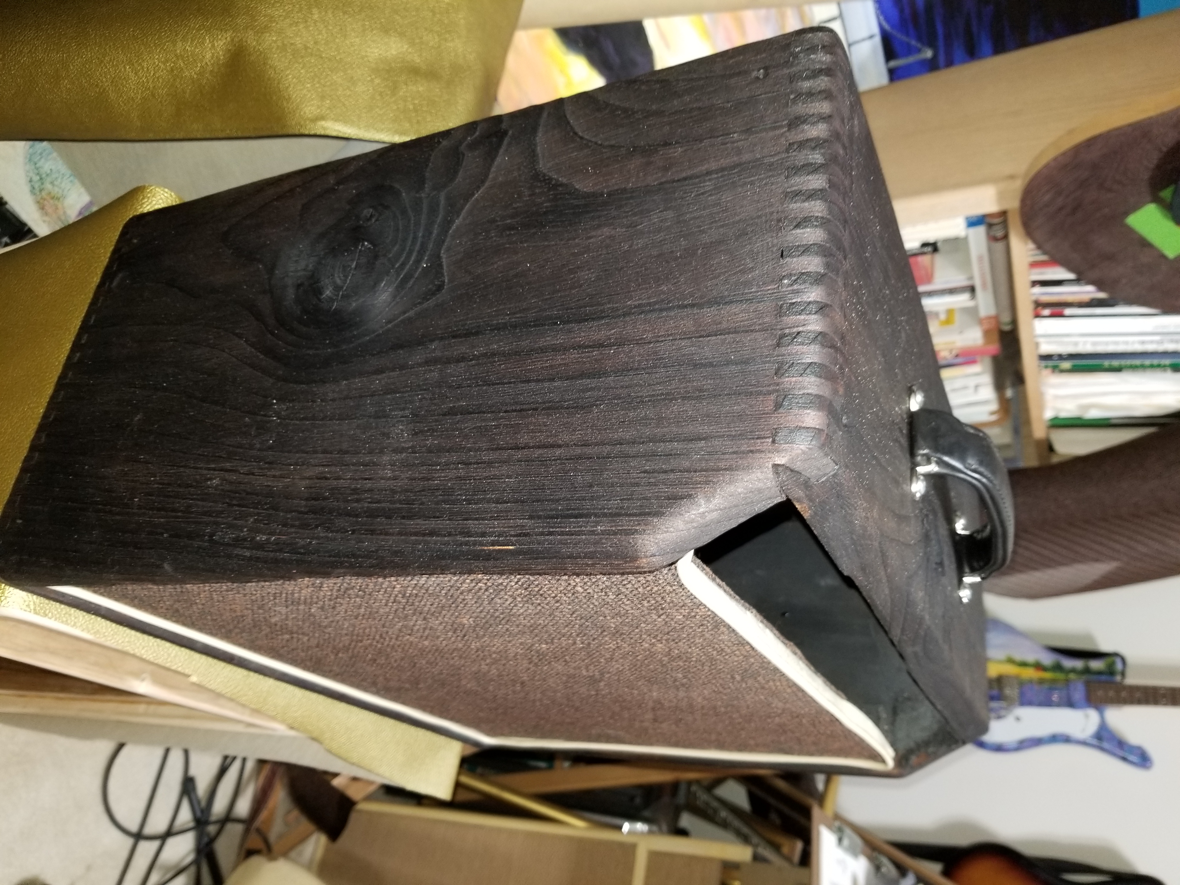 Took a cab with a bad tolex job and tried the Japanese Torch/Brush/Oil method. Here are some images. The loss of wood was 1/64" down to the grain lines, then another 1/64" to the softwood surface. Very 3D in person.