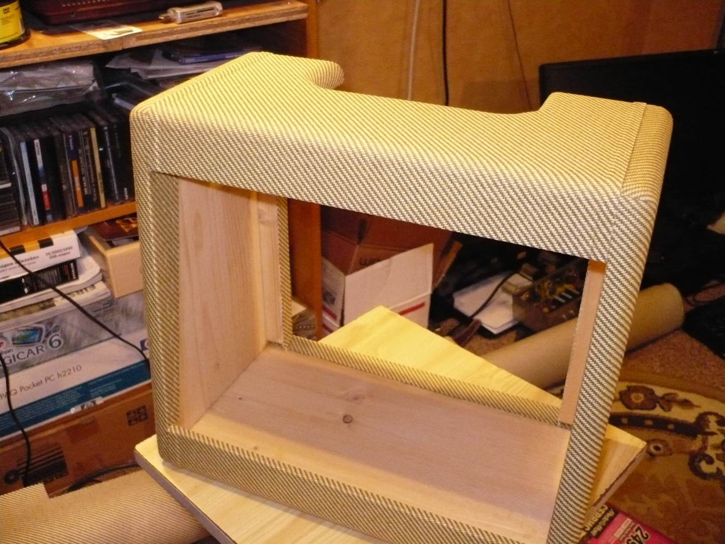 This cabinet design allows you to remove only part of the tolex in the upper side. Just try to remove this white piping at the edges. And this gives hope for the implementation of your plan. But there is dried glue under the tolex. And very often it is a big difficulty to remove it. And you will not...