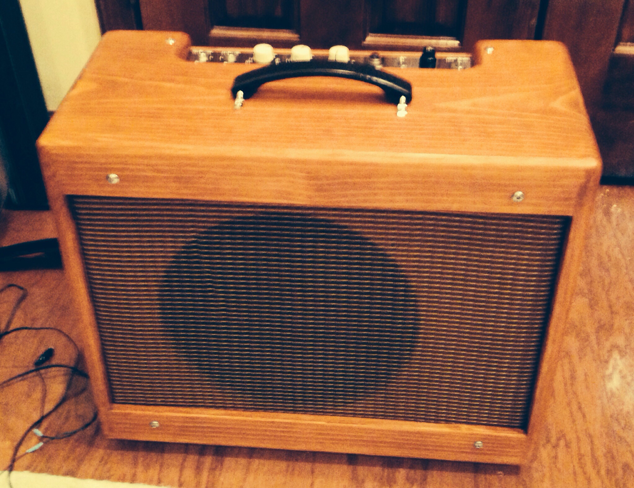 The Rocket amp I posted which had the sound clips,i got that cherry cab from "Sorry Charlie".. I also built a bassman 5F6A, that cab also came from him. He does great work, good price, and makes sure you are happy with the cab. The cherry cab I just used tung oil on it. Came out looking really good.