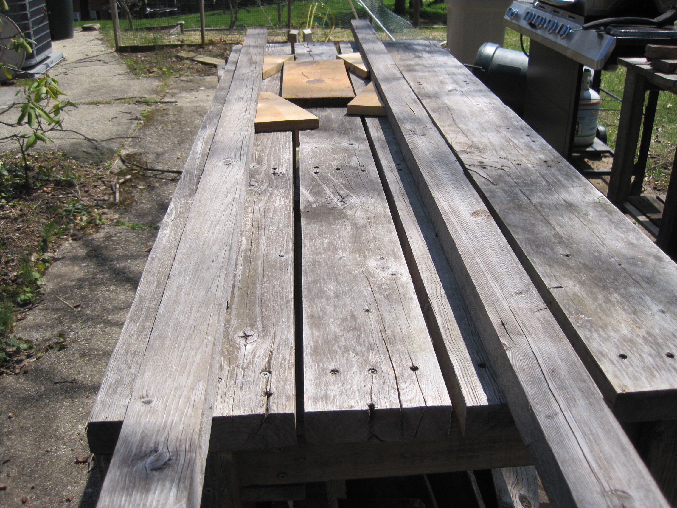 4) Rails on the work table. This are about 2" x 2". The exact dimension isn't critical. They need to be true to give you uniform height from the table. These have been outside all winter and now I'll have to figure out how to true them up again. These can be screwed into the work table or clamped, depending on the size of the work piece.