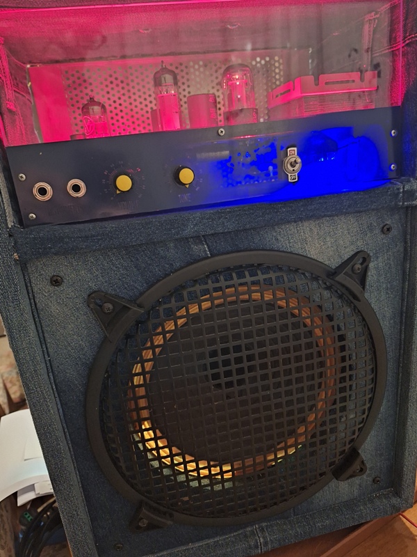 An VOX AC4 style amplifier, two LED strips and you're done. :)