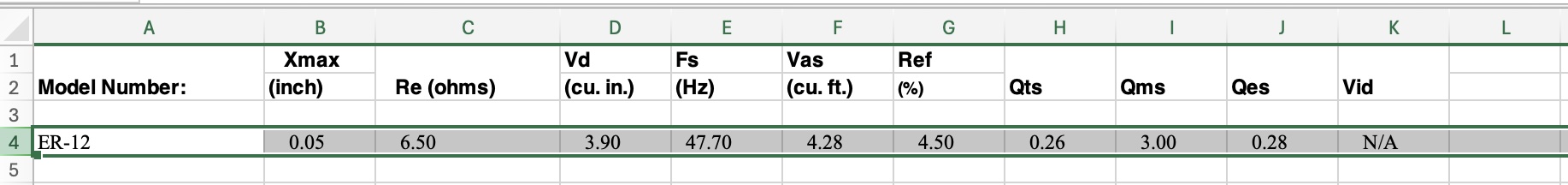 The T/S params are a little different than EV12L, but it is a similar cast-frame heavy duty speaker.