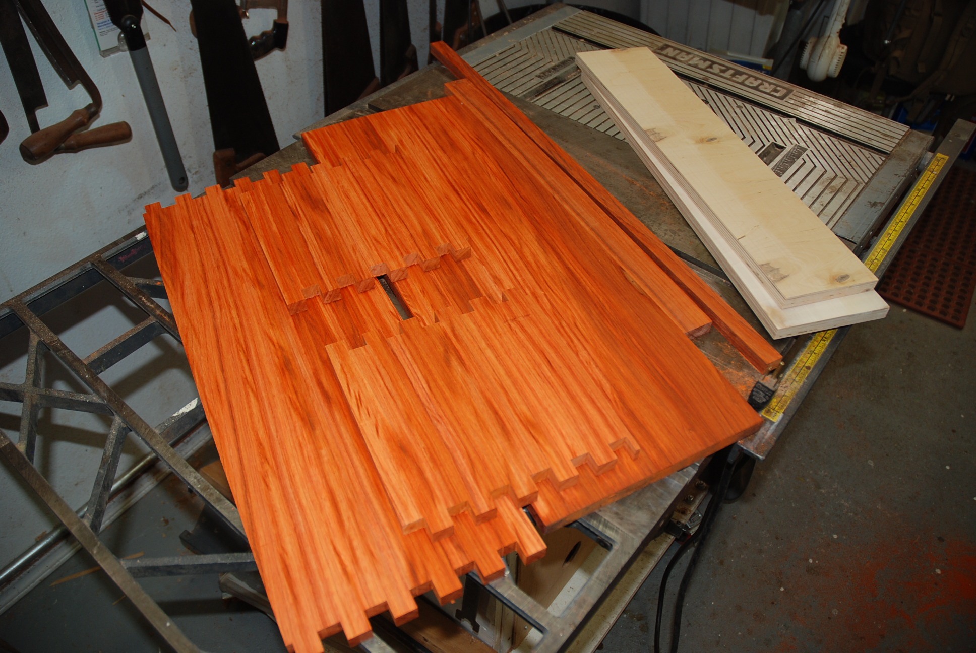 Cut the piping last night [still have all of my fingers]. Cut the grooves in tonight and fit the piping. The piping is just press fit - there are some scratches from the table saw that may get addressed.