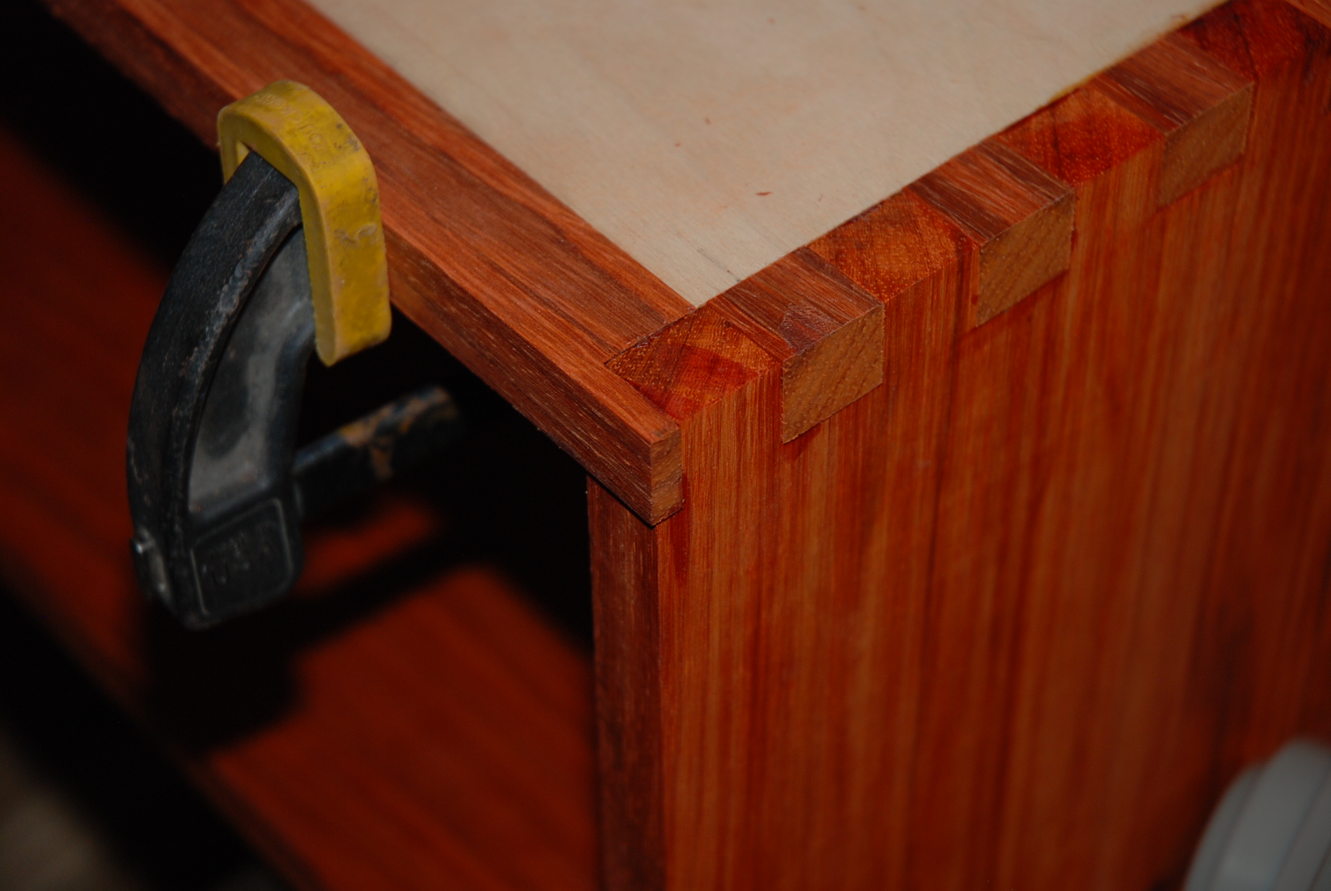 Aside from the boooorrrrriiiiiiinnnnnngggggg [boring] experience of milling down the 7/8" to 5/8" with a drum sander [No easy access to a planer wide enough] this was an easy cab to build. No extra bits of round over wood for the 1" rounds on the speaker cab or baffle stuff.