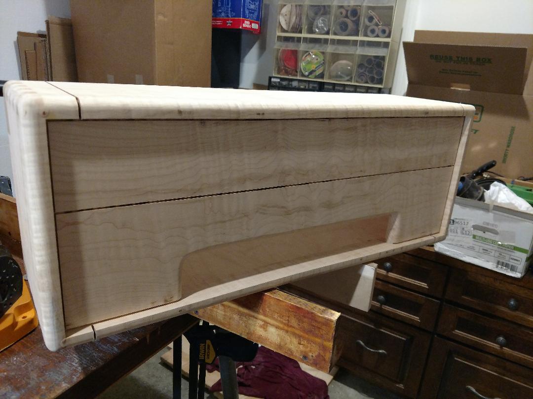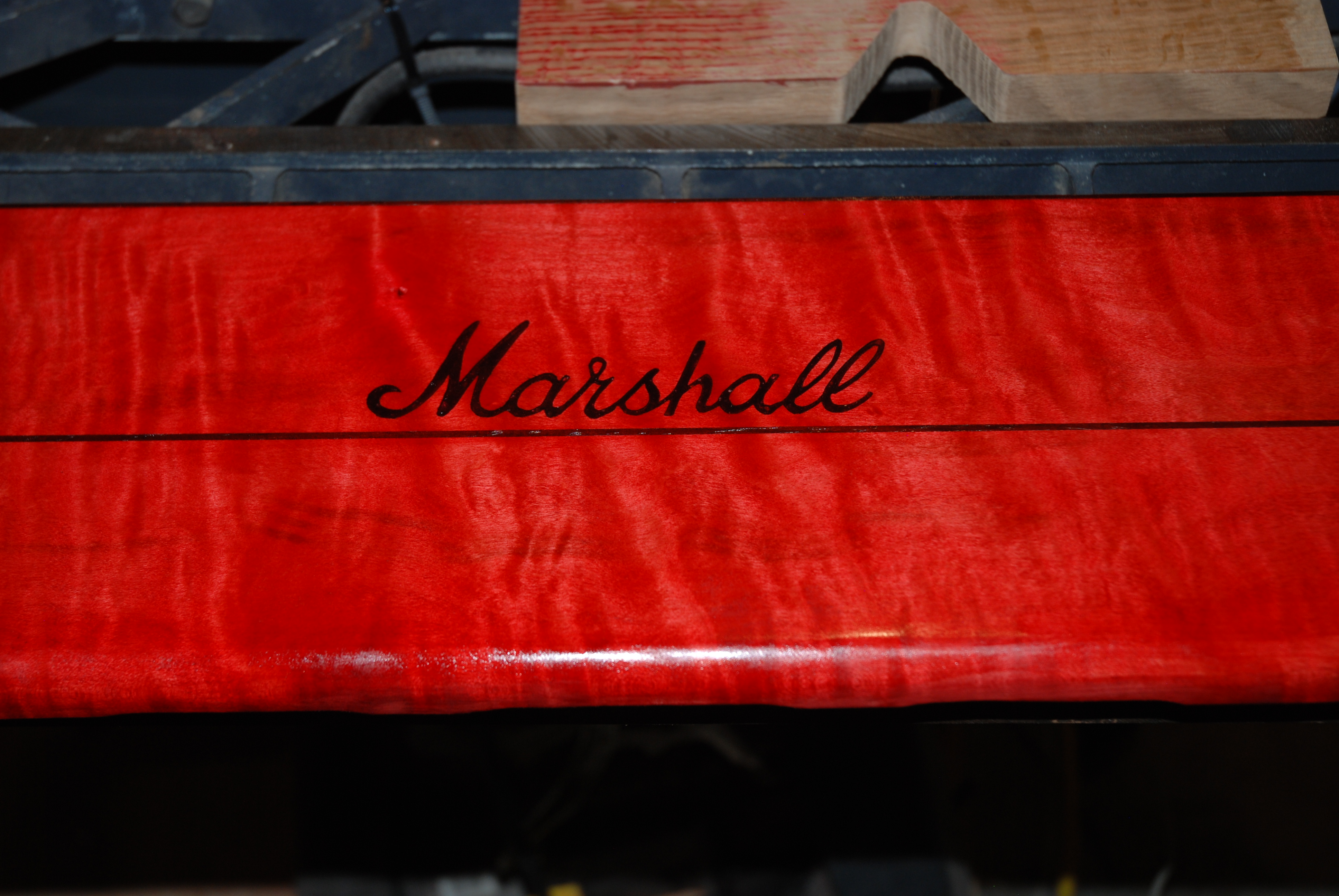 I've played with this idea for over a year wanting to wrap / morph / stylize a dragon on a cab for a 1959. The last insanity was having a dragon claw bursting from the curly maple top and possessively scratching the face plate. I've done some pretty wild things with wood but that's a bridge too far. So scaling back to curly maple case, walnut piping a carved Marshall logo - I'm thinking black - with a two tone dye job. Scarlet sanded back topped with orange and a spray sealer. The scratched face plate is still a go as I plan to build a dragon claw with curly maple and ebony talons to sit on top. This way the thing - minus the claw - will fit in a flight case for shows.