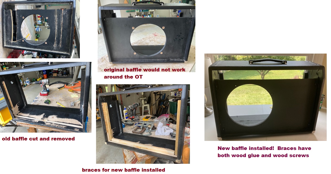 Another example I did maybe 12+ yrs ago. Sort of a "tweed style" approach using bracing and a baffle. Very easy to do.