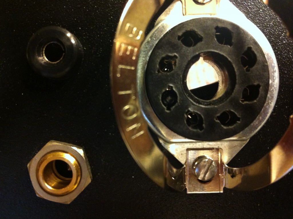 Ugh!!! Power tube socket solder blob. I'm hoping I can get this out somehow.