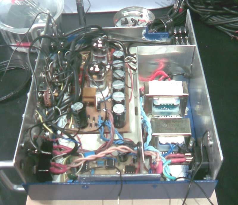 It works all right, I added an attenuator and a lopass filter at the output for better control, an opamp cab sim, an FX loop. It´s all inside an alu box, including the two transformers wich are in a "sub-box" in an attempt to minimize hum pickup.
