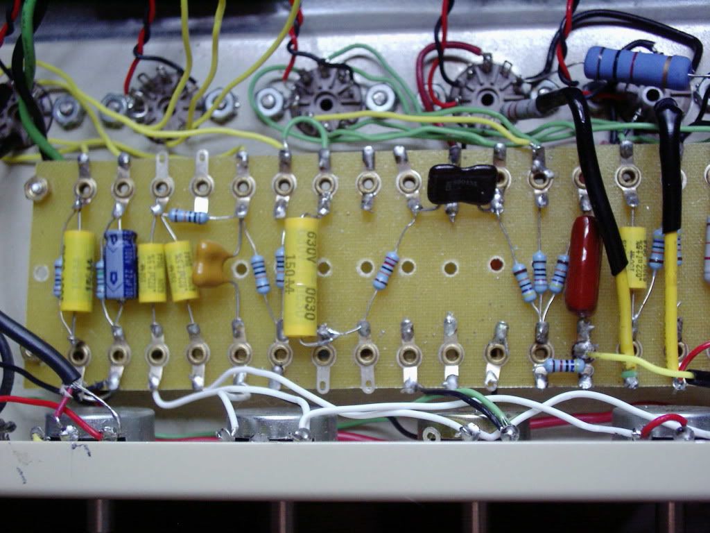 Yes, I did yank the v2 wires from the board, and that gap in the middle of the board is where I removed the blocking cap resistor and dropping resistor. That mess there now is just tacked in to see if it would improve the situation. Its just strange that running straight from v1b plate to the p.i. works so well and any attempt to insert a cap or resistor between these 2 pointa brings back the hum and breakup. If I can't figure this out by Sat. I guess I will try a Liverpool, but I wanted to try something different. Well, this is different all right...