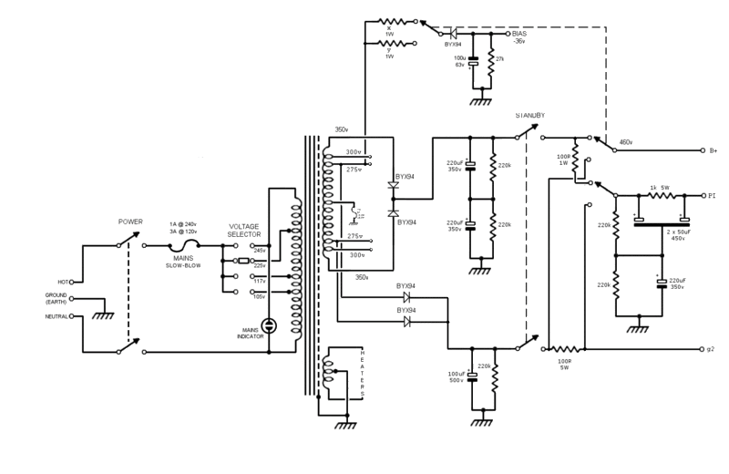 First post and I have a question. I'm building a Hiwatt inspired amp using a multi-tap PT and 4x6v6GT power amp. I want to keep the screens at the lower voltage tap whilst being able to switch Plate and pre amp voltages. I know switches aren't very good at handling high voltage DC but most amps have the standby switch after the rectifier anyway. And switching while on standby should be ok right? This is my plan.. shoot it down if it's crazy.