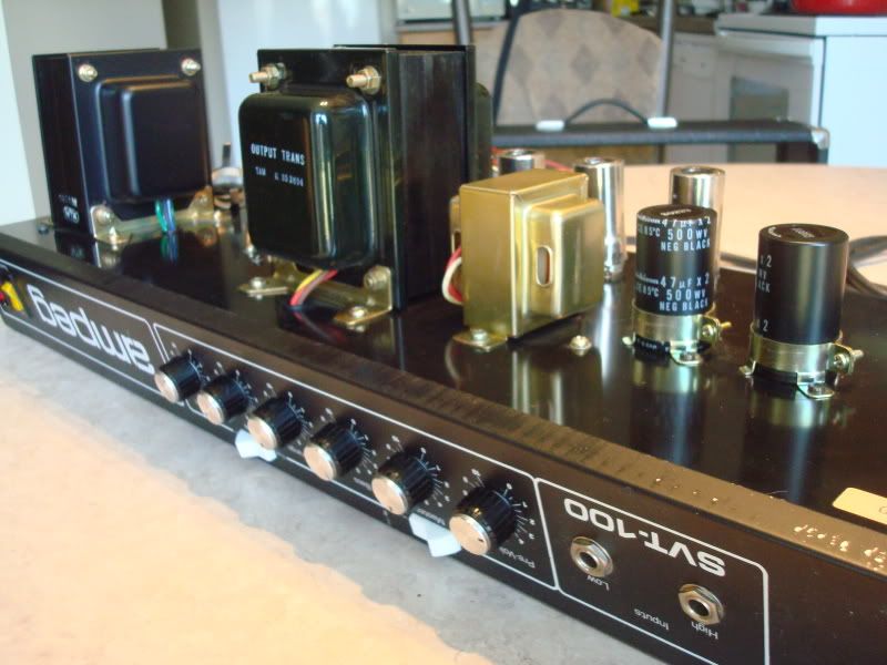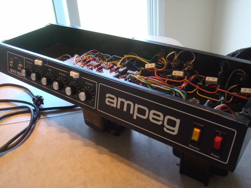 This amp was a modified V5 amp from the MTI days and made into a bass amp. When SLM bought Ampeg they recieved a supply of V5 heads. They made a few small component changes in the preamp and had the SVT-100. none of the SVT-100's were built from scratch.