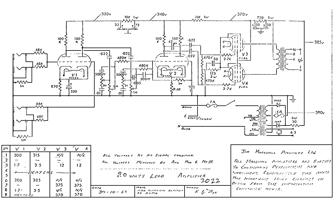 I built one of these a couple of years ago, the 2061X version (different phase inverter). The 5nF (0.005 uF) treble bleed cap of the lead channel (middle tone/vol combination) can be very bright. Should tear your head off. I think the 1987 50 watt Marshall had the same value treble bleed cap.