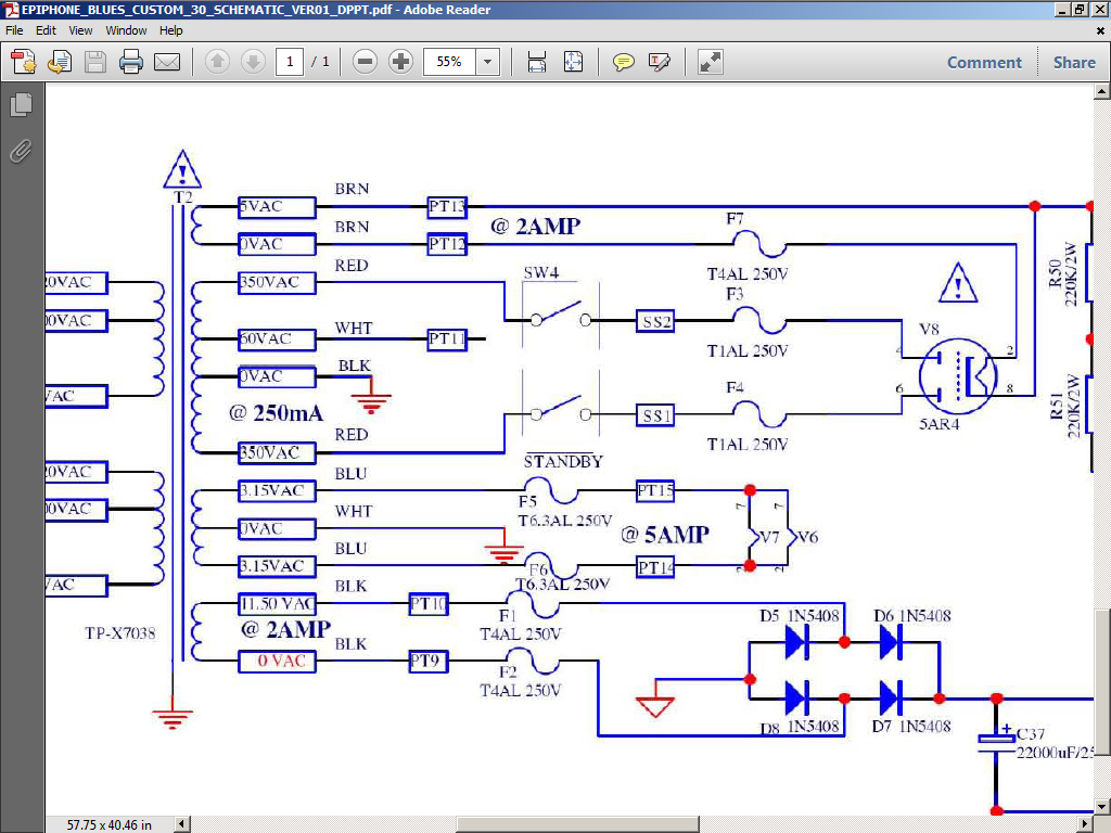 It's interesting that it also has a 11.5-0 ac that is rectified to filtered DC for the 12aXX tube heaters, but the power tubes and rectifier are the usual ac heaters.