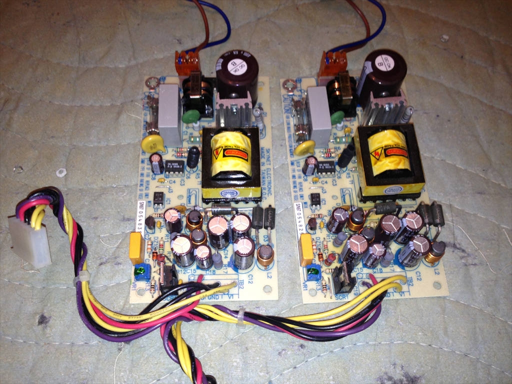 I stripped two of the chassis and saved the power supplies. Will definitely come in handy for projects down the road. I'm not sure if they're AC or DC. There are some healthy sized diodes on the boards so I'm guessing DC. They're only marked V1, V2 and V3. I'll have to power them up and meter them.