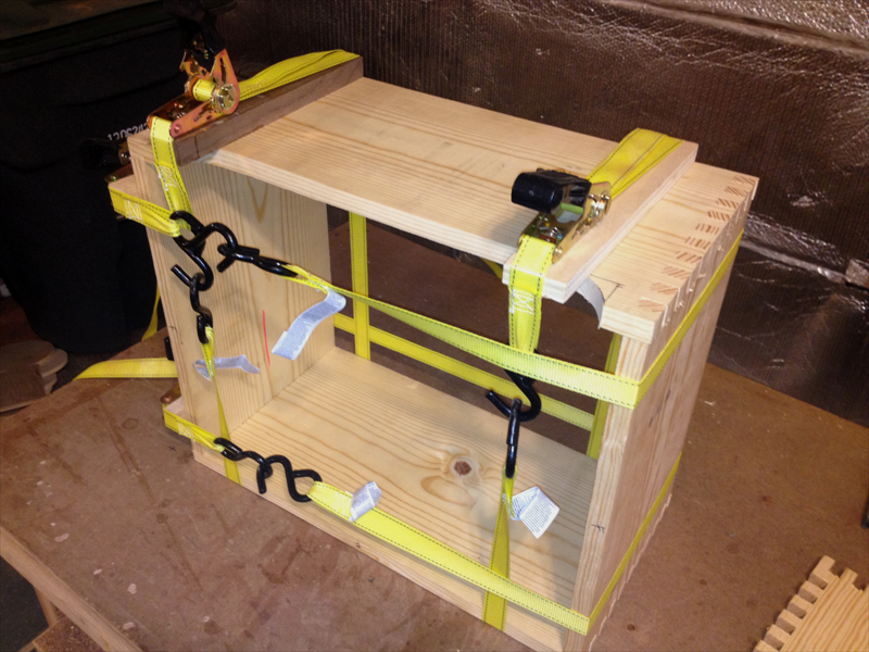 All glued up. I'll get the round overs, cleats and baffle done tomorrow.