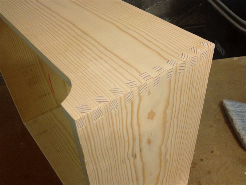 I used the box joint jig that I made during my Bassman build. It's really easy to use and it dials in very quickly. So far I've been getting great results with it. Here it is set up on my trusty Shopsmith. I was looking for a dado table insert and found an entire table on eBay for less than what most were paying for the insert...it's all in the timing I guess. Now I just swap out tables instead of inserts. :cool: