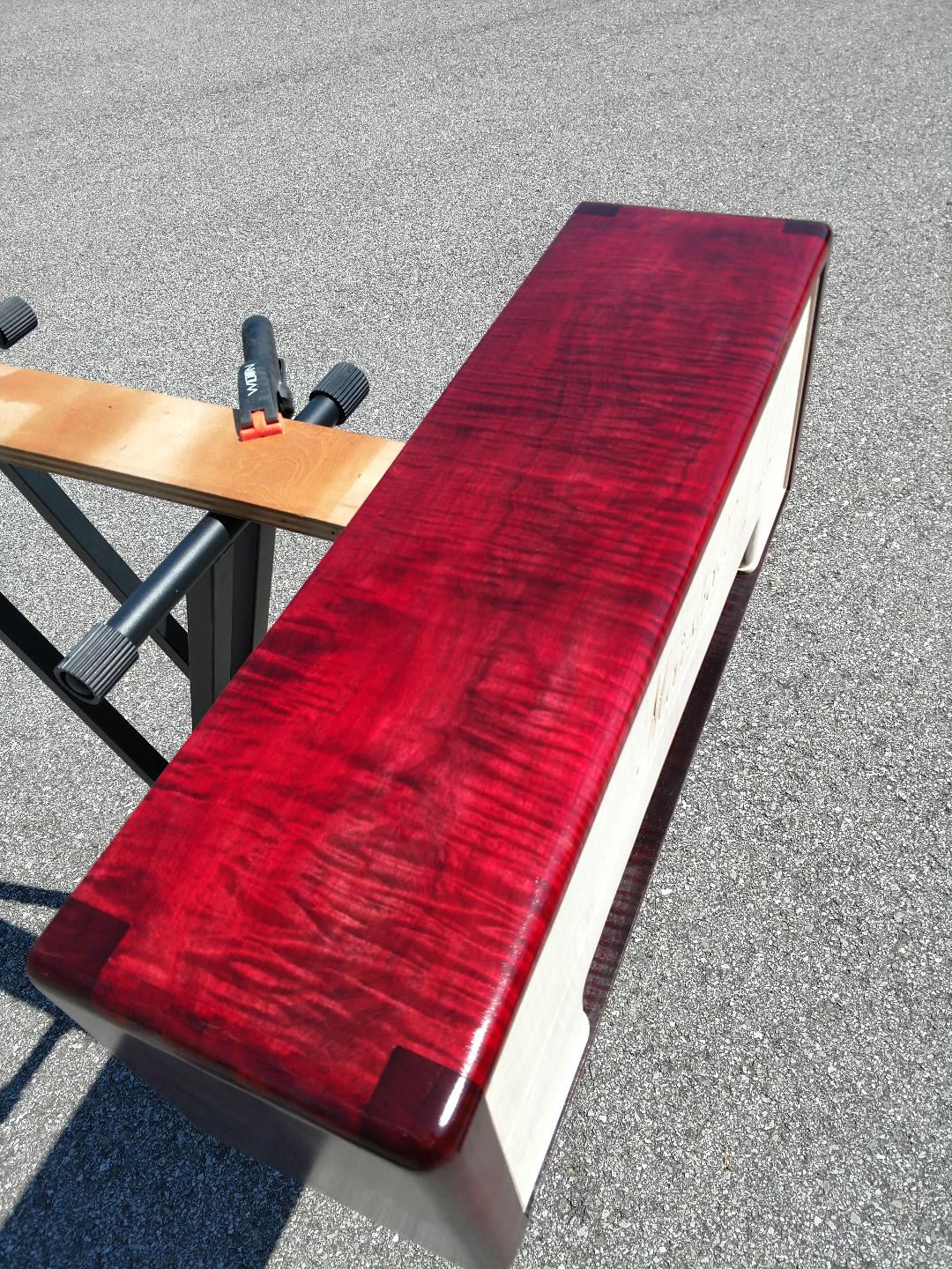 Six coats of lacquer - I had to drag it outside to get decent pics.